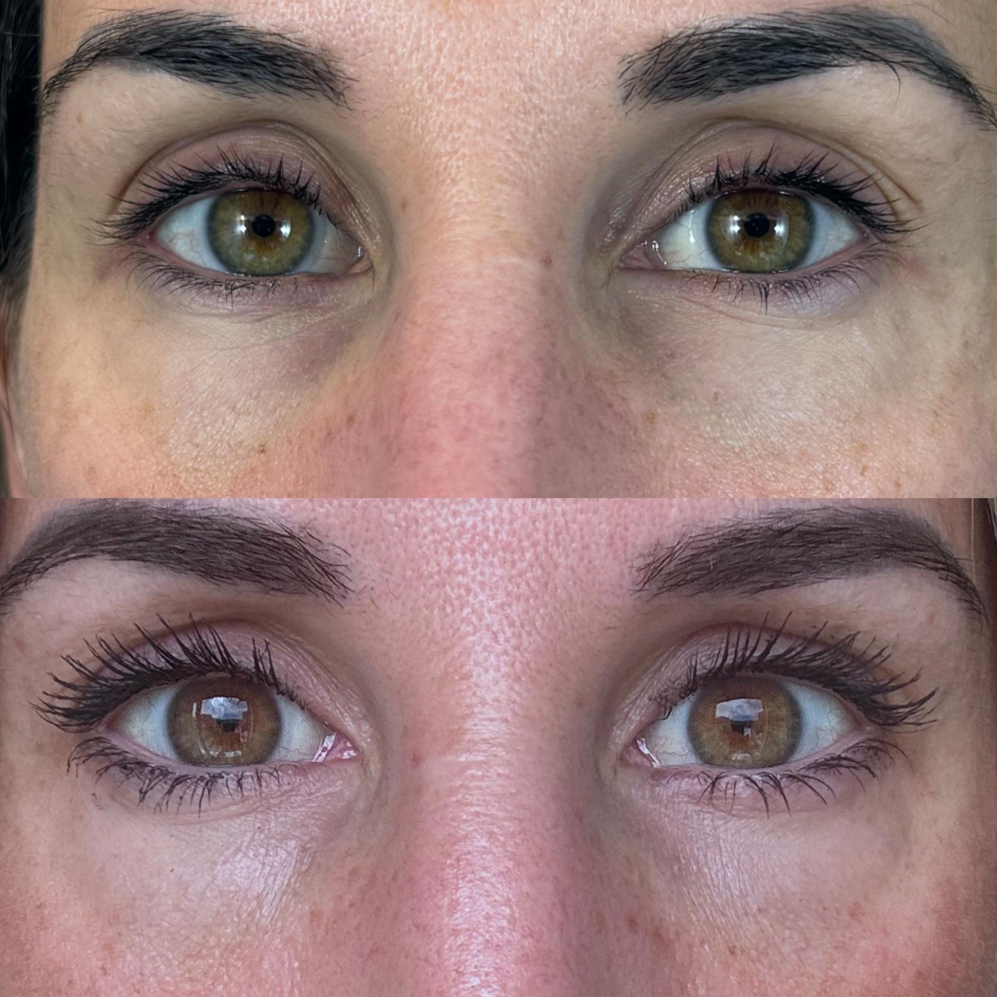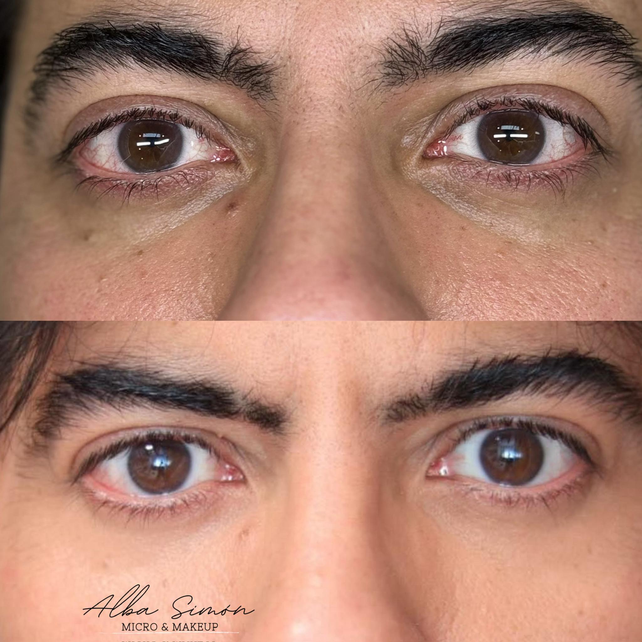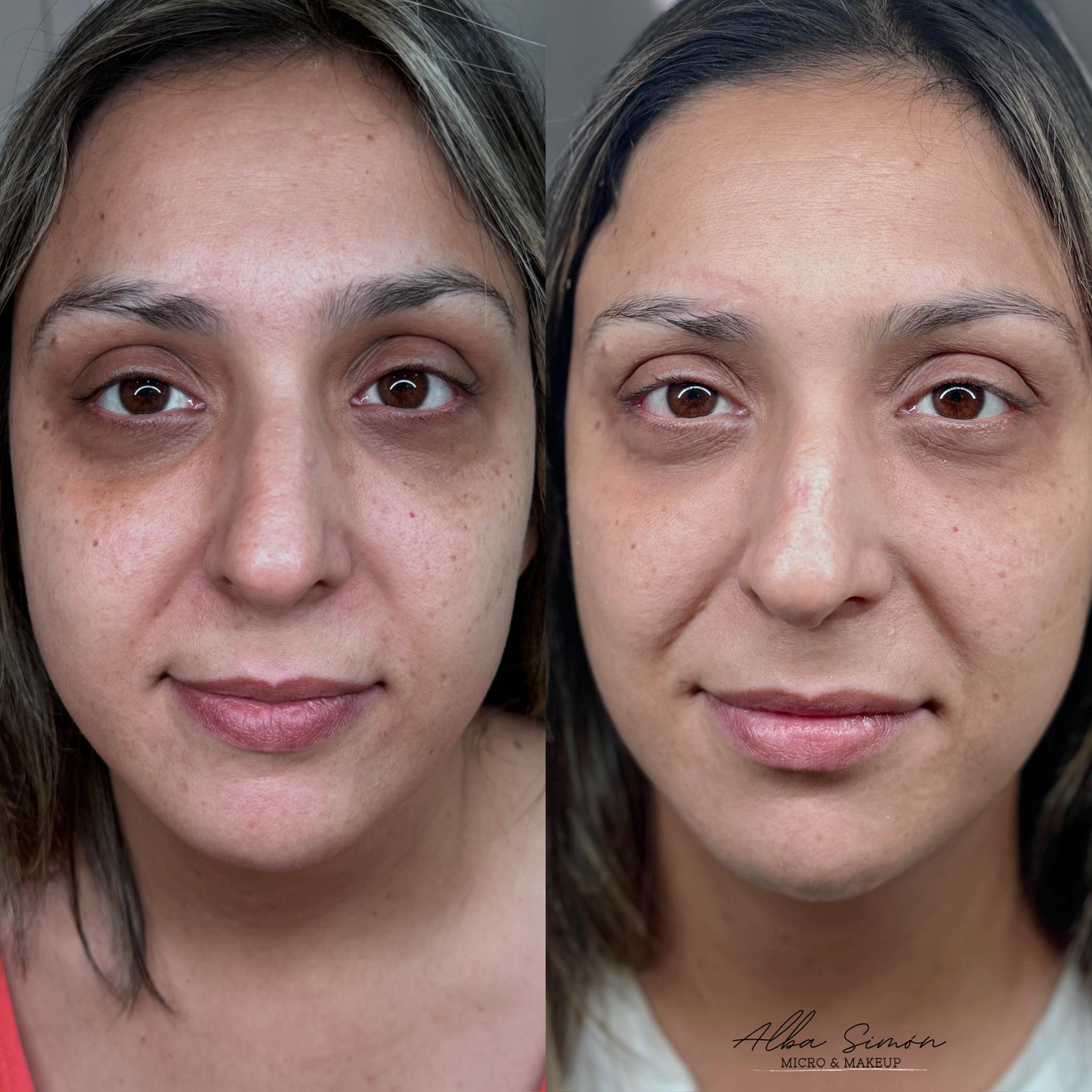 Proceso de ciactricación de la ojera. - Pre y post tratamiento.